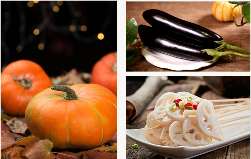 翠綠的菠菜、鮮黃的南瓜、紫瑩瑩的茄子……